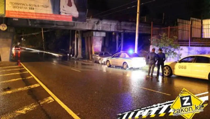 В Алматы водитель BMW 5-ой серии не справился с управлением и врезался в опору ж/д моста, сообщает корреспондент Zakon.kz.