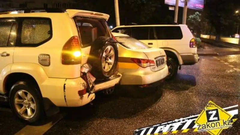 Авария произошла около трех часов ночи. Со слов очевидцев, по Сейфуллина на север, перед улицей Толе би на перекрестке стоял Toyota Land Cruiser Prado и ждал зеленого сигнала светофора. В Prado на полном ходу въехал Mitsubishi Montero.