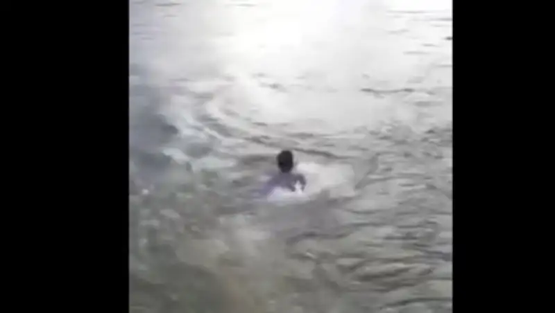 На кадрах отчётливо видно, как молодой человек, разувшись, прыгает в Иртыш в районе аллеи Влюблённых рядом со спуском к реке. Проплыв несколько метров, подросток пытается схватиться за бетонное ограждение. Однако у него не получается это сделать, и парень начинает кричать. Снимающий происходящее оператор зовёт на помощь. Всё, что происходило дальше, осталось за кадром. Слышно лишь, как тонущему парню говорят грести к берегу, он же в ответ лишь кричит. После съемка обрывается.
