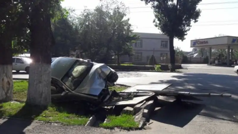В Алматы Toyota снесла информационный щит