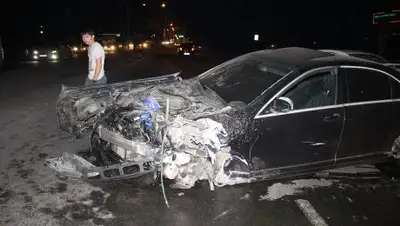 По словам свидетелей аварии, автомобиль Mercedes на высокой скорости ехал по проспекту Райымбека в сторону города. В районе рынка "Алтын Орда" по неизвестной причине машину начало швырять по дороге.