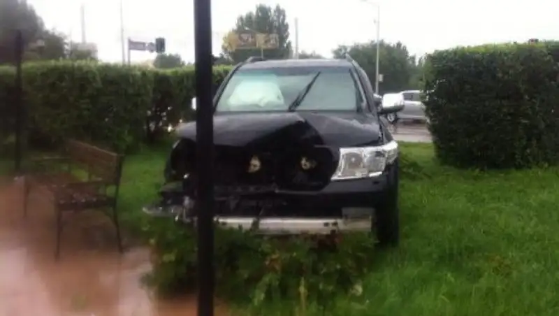 В Астане в районе улицы Ташенова произошло дорожно-транспортное происшествие, в результате которого Toyota Land Cruiser вылетела на газон, сбив мусорный бак, сообщает Казинформ.