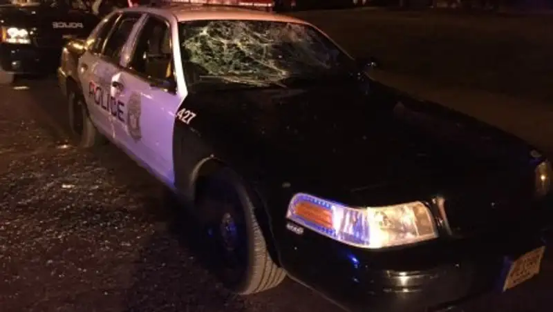 По его сведениям, в одном из городских районов сосредоточились около ста человек, некоторые из которых ведут себя агрессивно. Они подожгли автомобиль и стали бить стекла других машин. Им противостоят отряды полиции в том числе со снаряжением для подавления массовых беспорядков. Полицейские пока воздерживаются от решительных действий и укрываются за патрульными машинами.