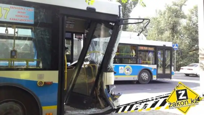 7 человек пострадали в результате сильного столкновения пассажирских автобусов в Алматы