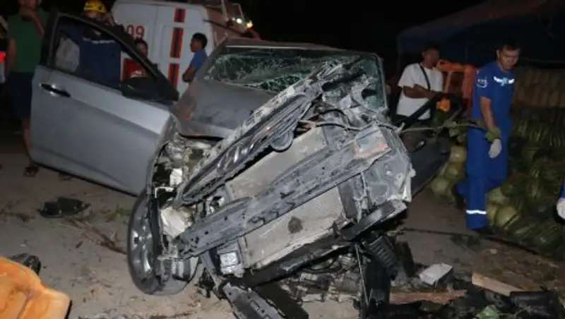 На обочине в этот момент стояли продавцы арбузов. Одного из них водитель Accent сбил на полном ходу. Затем автомобиль понесло в дерево.