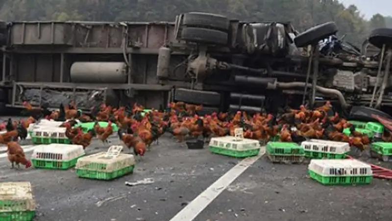 В Китае из перевернувшегося грузовика сбежали 700 кур