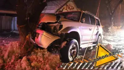 Авария произошла около 4 часов утра. Автомобиль Toyota Prado двигался по проспекту Райымбека в западном направлении. Не доезжая до пересечения с улицей Тлендиева водитель «Прадо» по неизвестной причине, перескочив бордюр, выехал на обочину, где, разнося на своем пути сугробы, врезался в дерево.