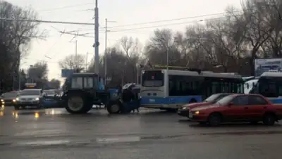В Алматы трактор въехал в троллейбус
