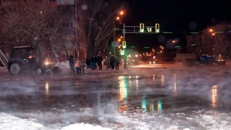 Крупная коммунальная авария произошла в Петропавловске. Горячей водой затопило три центральные улицы города – Жумабаева, Интернациональную и Пушкина.