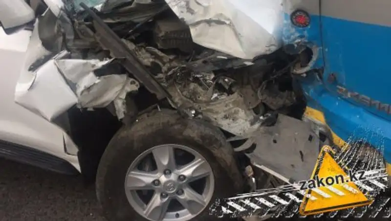 В Алматы женщина за рулем внедорожника врезалась в автобус