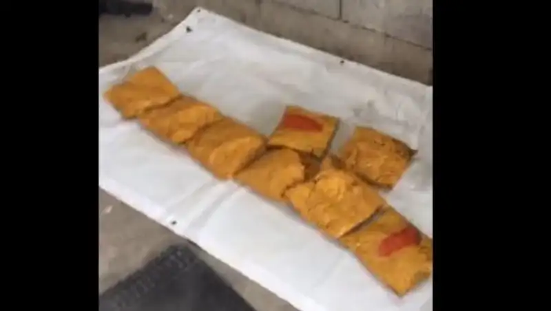 В ходе углубленного досмотра под передней панелью приборов было обнаружено 13 брикетов, обмотанных желтым скотчем. Еще 6 нашли в трубе ребра жесткости. Согласно заключению экспертизы выявленное порошкообразное вещество является героин весом 15 кг. 401 гр. Наркокурьер пытался провезти смертоносный груз из Оша в Москву.