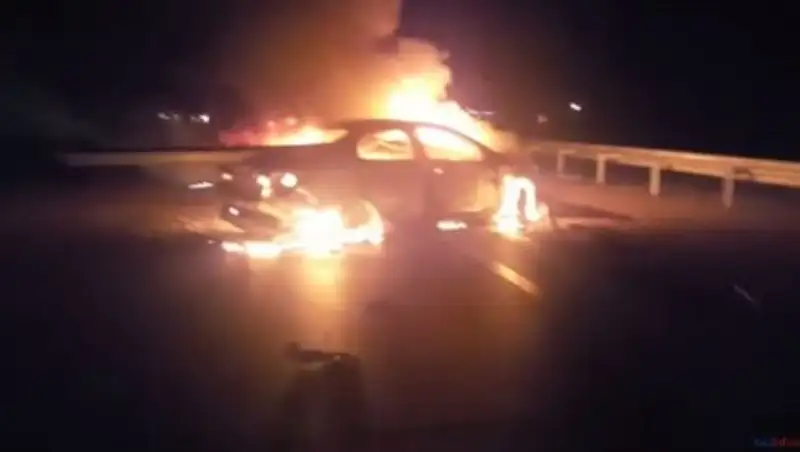 Автомобиль службы такси сгорел на трассе Астана - Караганда