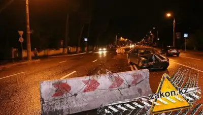В Алматы автомобиль Mazda врезался в бетонный блок, передает корреспондент Zakon.kz.