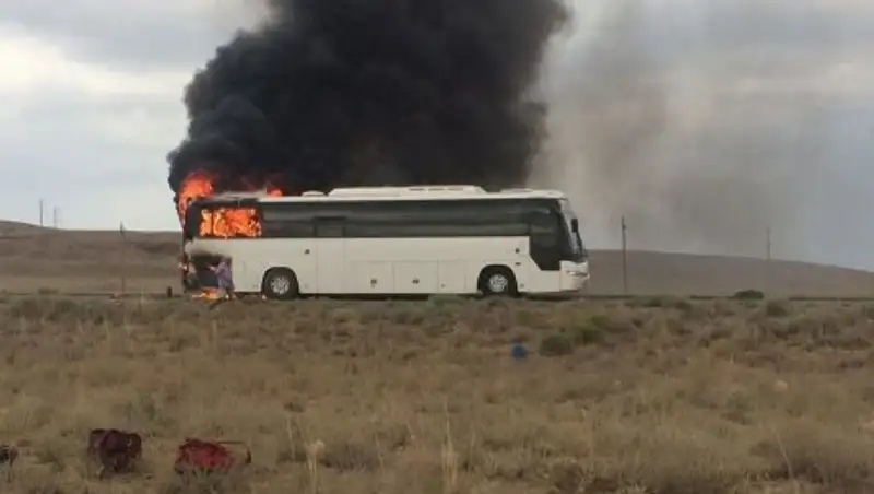 В Мангыстауской области на трассе сгорел пассажирский автобус