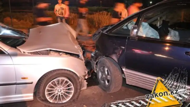 Два BMW и Toyota Lucida столкнулись в темном переулке на окраине Алматы
