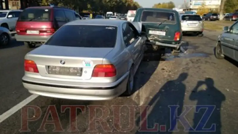 Автомобиль BMW несколько метров тащил по дороге «Ниву», которая потом врезалась в Subaru, передает портал patrul.kz.