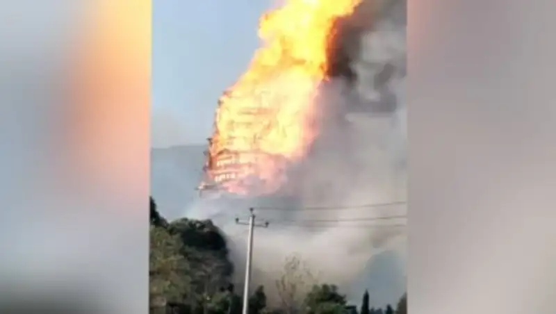 В китайской провинции Сычуань загорелась 16-этажная деревянная башня, которая известна как самая высокая в своём роде в Азии. Как отмечается, это была самая высокая буддийская пагода в мире.