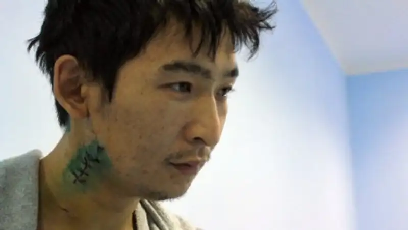 - Я начал вырываться, — вспоминает Мейрамбек. – Но я был пристёгнут ремнём безопасности, и не мог сразу убежать из машины. Ещё меня держал парень, который сидел спереди. Тот, который сидел сзади, всё время кричал ему «Держи, держи, чтобы не убежал!» Они нанесли мне по меньшей мере 10 ударов, нож был гибкий, гнулся, как будто кухонный. Я кое-как выскользнул из-под ремня, с меня сползли куртка, свитер, и полуголый выскочил на улицу.