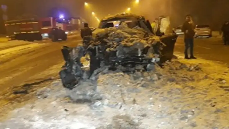 Столкновение произошло по Талгарской трассе, напротив микрорайона "Думан". Как рассказали очевидцы, автомобиль Range Rover двигался по Талгарской трассе в восточном направлении. По невыясненным причинам водитель столкнулся КамАЗом, который расчищал дорогу от снега.