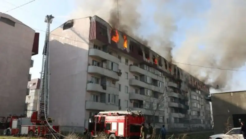 Вызов на пульт дежурного ДЧС Алматы поступил в 16:03. Первые расчеты на место прибыли в 16:11, на момент прибытия пожарных подразделений огнем были охвачены фасад здания с первого по пятый этаж, предварительная площадь пожара составляет 1000 кв.метров. Кровля полностью охвачена огнем.
