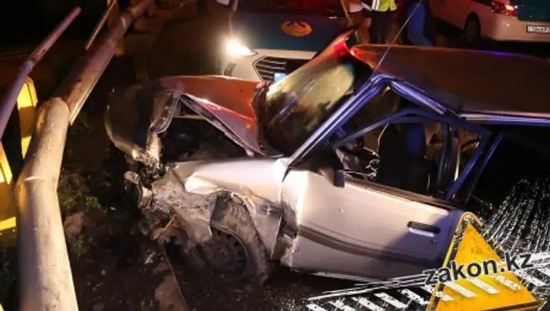 В Алматы четыре угонщика врезались в отбойник и сбежали с места ДТП