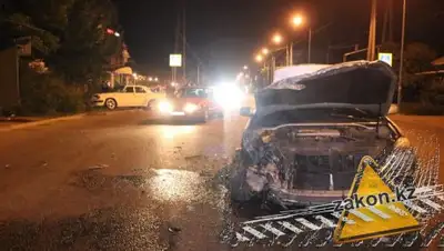 Волгу выбросило на обочину в результате ДТП в Алматы