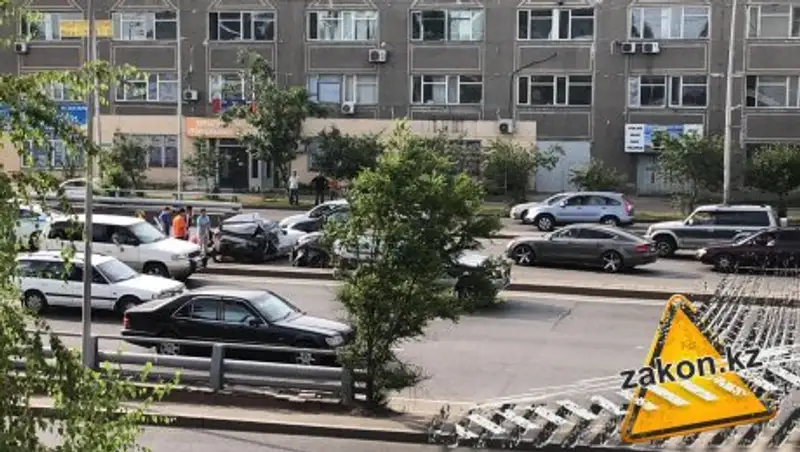 Дорожная авария произошла не доезжая до развязки с ул.Жансугурова. По словам водителя Mercedes, он следовал по проспекту на восток. В один момент автомобиль заглох. С трудом запустив двигатель, водитель собрался трогаться с места. Но в этот момент сзади в него врезался SsangYong, который ехал по левому ряду. Пытаясь избежать столкновения, водитель SsangYong пытался перестроиться в правый ряд, однако там ехал другой автомобиль.