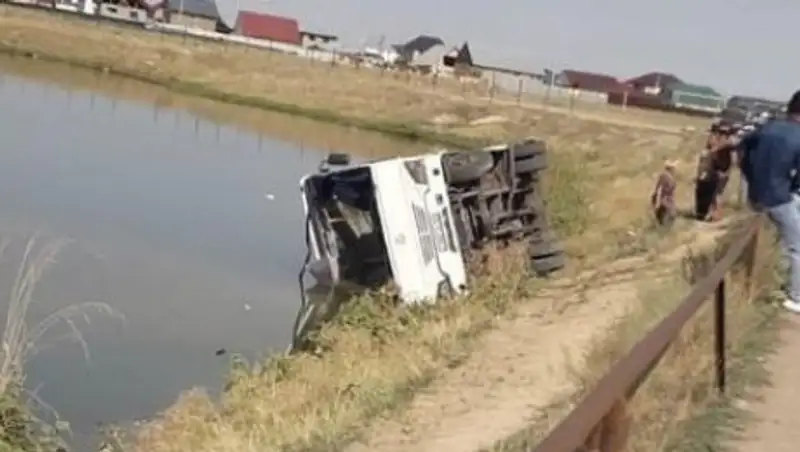 Видеозапись инцидента опубликовали в Instagram. По данным пресс-службы акимата области, автобус 412 маршрута перевернулся близ поселка Ашыбулак в Илийском районе.