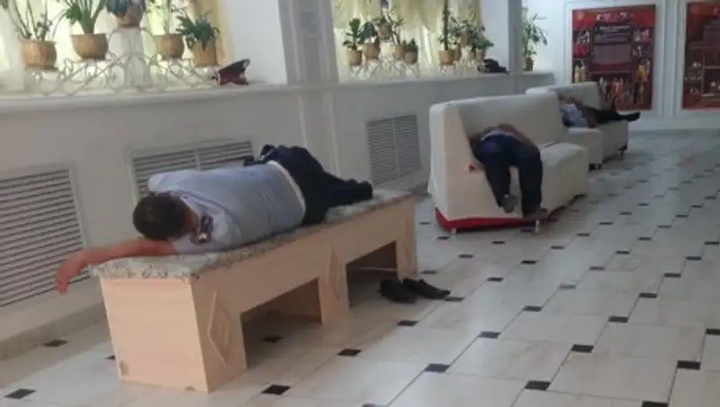 Как сообщил представитель МВД Алмас Садубаев, опубликованные в соцсетях фотографии со спящими в фойе театра полицейскими изучены.