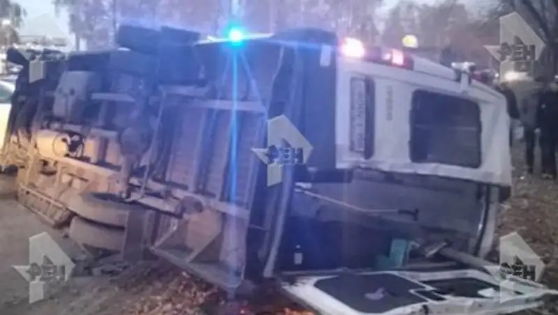 Столкнулись автобус ПАЗ и маршрутка "Ивеко". По предварительным данным, 4 человека погибли и 10 пострадали. Маршрутка после столкновения перевернулась. Движение на участке затруднено по одной полосе.