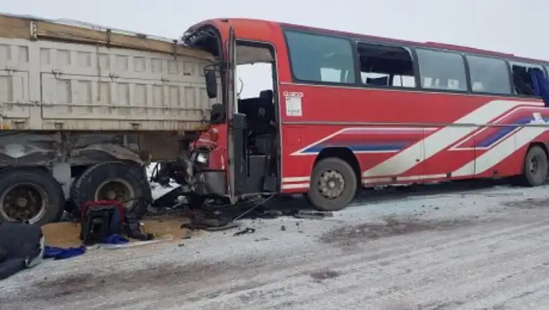 Грузовик и автобус столкнулись в Карагандинской области, один пассажир скончался