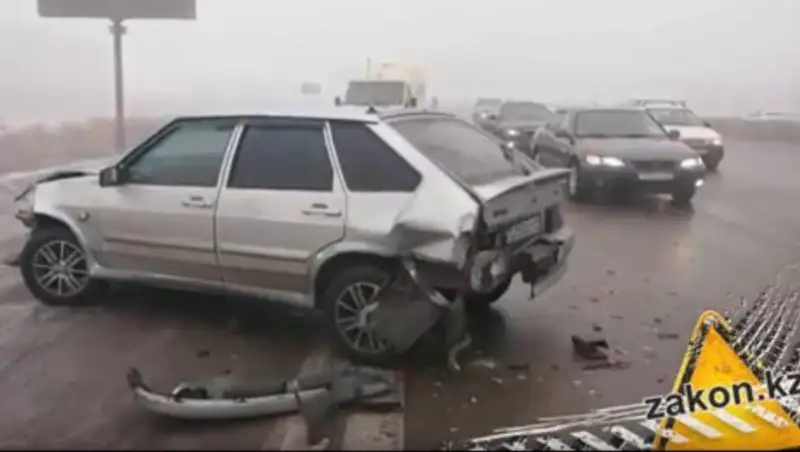 С какого именно столкновения все началось, уже не разобрать - последствия ДТП начинаются примерно с 19 км трассы в сторону Капшагая. По одной из версий, пешеход перебегал дорогу в неположенном месте, водители стали резко тормозить, и произошло ДТП.