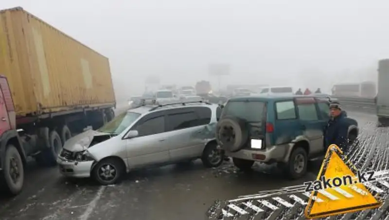 Между поселками Ынтымак и Отеген батыр в Алматинской области уже стоят около 30 разбитых автомобилей, передает Zakon.kz.
