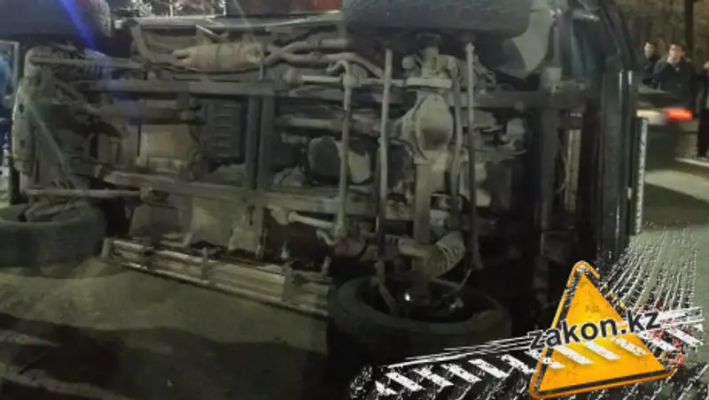Вечером во вторник, 26 марта, в Алматы произошла авария, в результате столкновения один из автомобилей перевернулся на бок, передает корреспондент Zakon.kz.