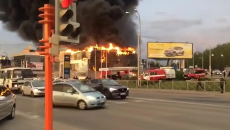 Жуткую картину можно наблюдать даже на большом расстоянии от места пожара. Там собрались сотни горожан. На близлежащих улицах образовались пробки. Рядом с автосалоном расположена автозаправочная станция.