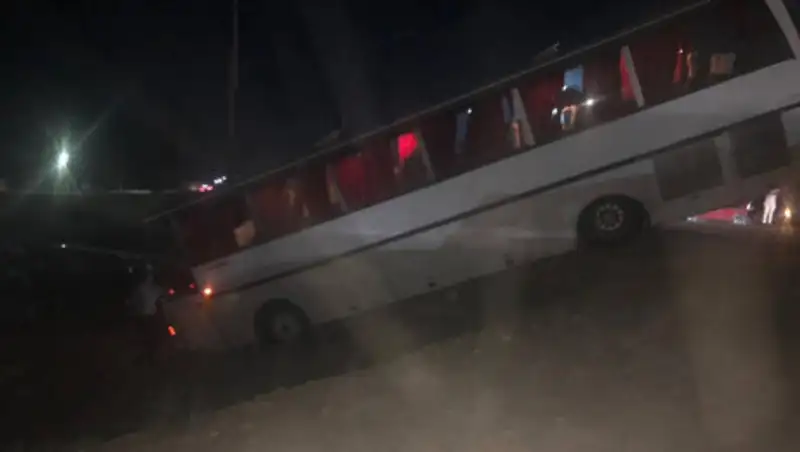 Автобус с казахстанскими туристами вылетел в кювет на Иссык-Куле