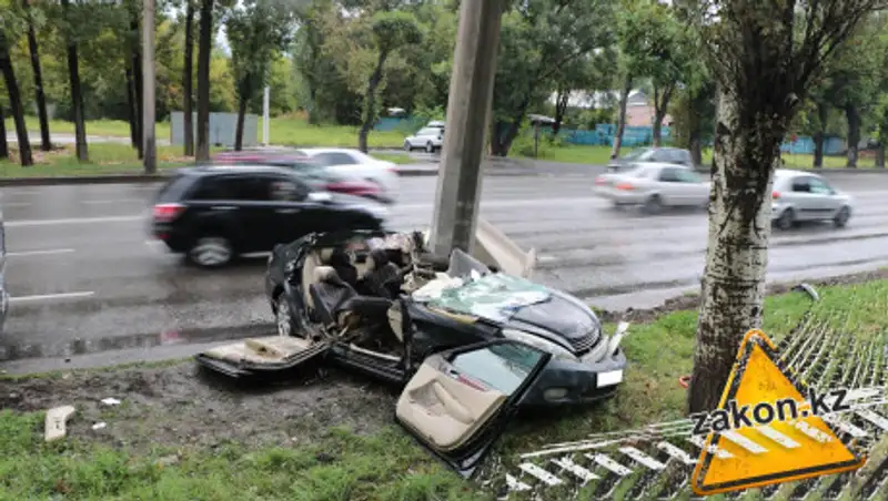 В Алматы Lexus "обнял" столб, есть пострадавшие