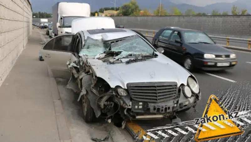 Как рассказал водитель ГАЗели, он двигался по пр. Аль-Фараби в западном направлении. Между улицами Мустафина и Торайгырова он почувствовал мощный удар сзади, после чего машина перевернулась. Выйдя наружу, водитель увидел, что у ГАЗели вырван задний мост. Выяснилось, что в него врезался Mercedes.