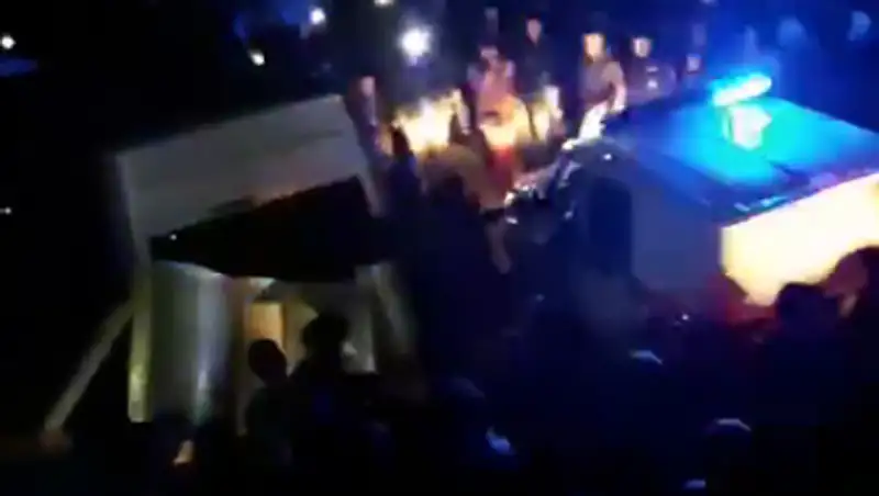 Стражи правопорядка со щитами окружили микроавтобус, на котором задержанного привезли на следственные мероприятия. После того, как разъяренная толпа захотела силой забрать мужчину, полицейские распылили слезоточивый газ.