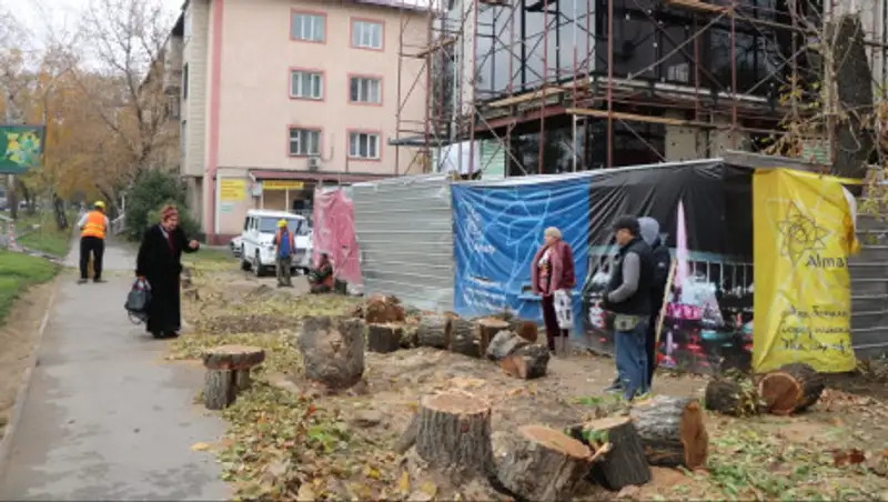 Алматинцев возмутила вырубка здоровых деревьев напротив Ботанического сада