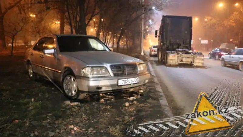 Грузовик Volvo двигался по проспекту Райымбека в западном направлении. Водитель ехал по левому ряду и не заметил, что справа от него, в "мертвой зоне" едет Mercedes.