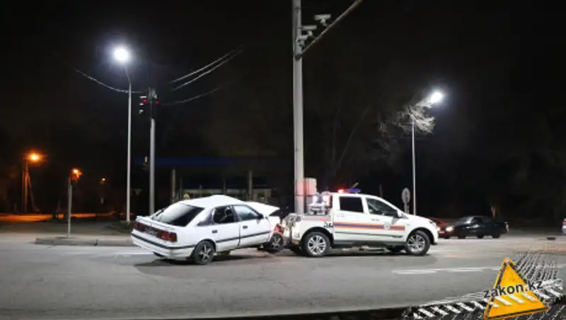 В Алматы автомобиль на ровном месте врезался в мачту с камерами видеонаблюдения, передает zakon.kz.