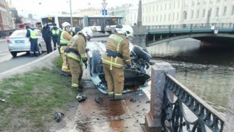 Полиция гналась за машиной в Петербурге, которая не вошла в поворот на огромной скорости. Автомобиль снес ограждение и повис над каналом, сообщает zakon.kz со ссылкой на ФАН.