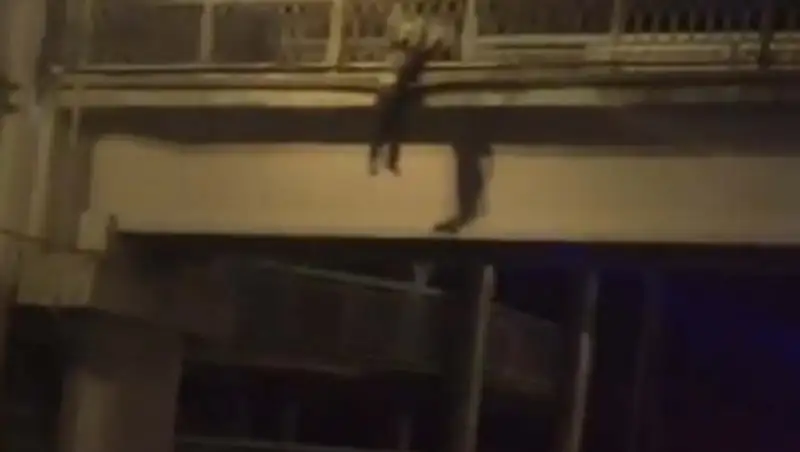 Появилось видео, как пьяный мужчина висел на мосту в Алматы