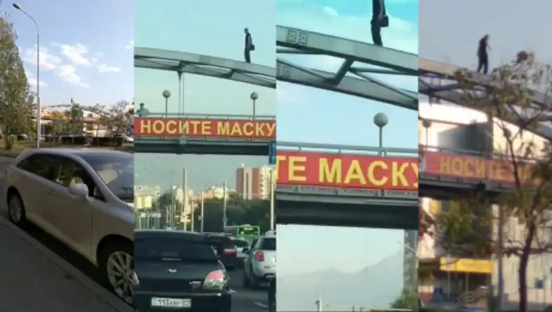 Пешеход прогулялся по крыше эстакады в Алматы и попал на видео