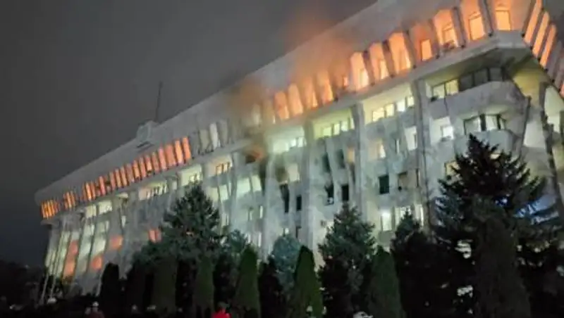 Пожар вспыхнул в захваченном во вторник демонстрантами здании парламента Кыргызстана, где также расположена администрация главы государства, сообщает zakon.kz.