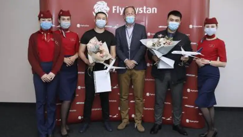 Позже помощников-спортсменов поблагодарили - руководство авиакомпании вручило Боханову Нурлану и Турабекову Манасу модели самолетов и ваучеры на покупку билетов и услуг авиакомпании FlyArystan.