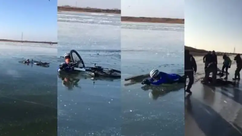 Неизвестный мужчина, решившийся прокатиться на велосипеде по льду реки Урал, провалился в полынью, сообщает zakon.kz.