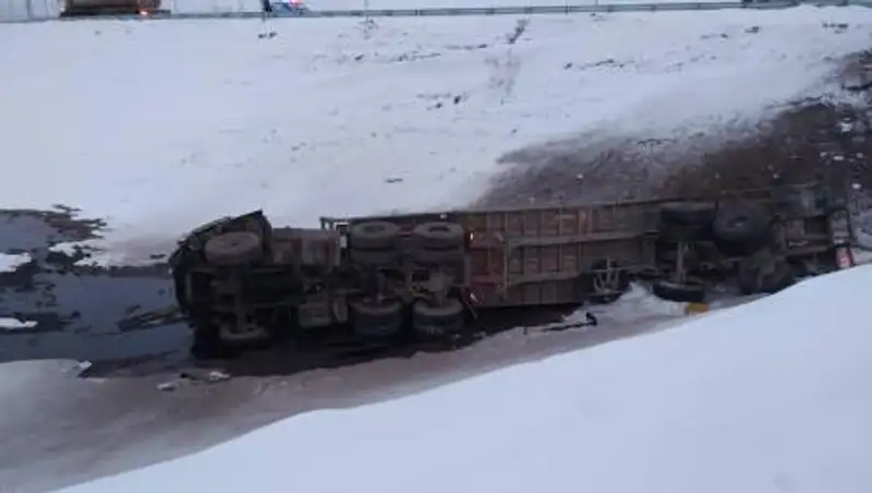 В Карагандинской области в пути следования произошло опрокидывание грузовой автомобиля, сообщает zakon.kz.