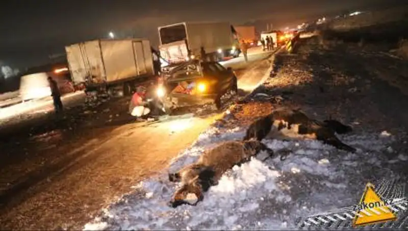 Две погибшие коровы - массовое ДТП на трассе "Алматы-Капшагай"